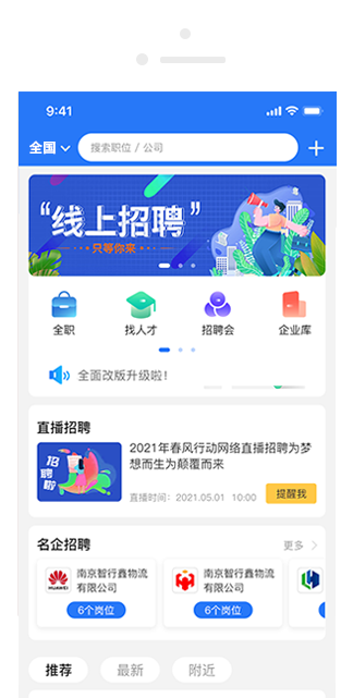 随时随地搜索工作,轻轻松松应聘职位,工作前途一手掌握。